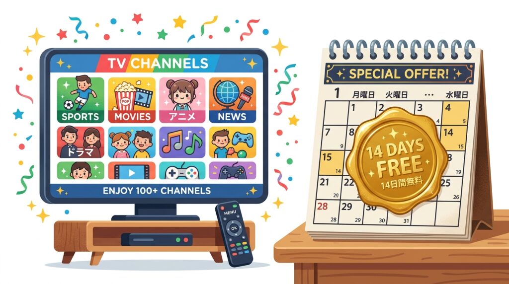 | 2週間全チャンネル無料 | 加入前にじっくり見極め |