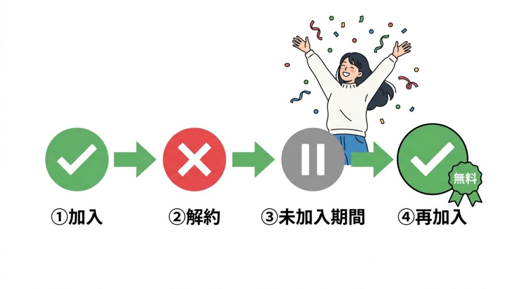 ③ 「未加入期間を経た再契約」で加入月無料が復活する